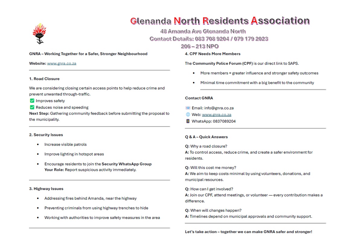 GLENANDA NORTHRESIDENTS ASSOCIATION